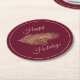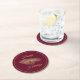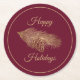 Weihnachts-Party-Untersetzer aus dunkelbeerrot mit goldfarbenem Akzent. Die goldene Grafik eines Kiefernkonus auf einem Kiefernzweig schmückt die Mitte. Happy Holidays in goldenem Tontext kann personalisiert sein, zu lesen, was Sie gewollt haben. Die passenden Vorräte und Einladungen für Feiertage stehen zur Verfügung.