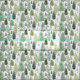 Wasserfarbenes Muster von Winterkiefern in Grün- und Grautönen auf Weiß. Ideal für Quilting und Feriengewebe. Entworfen von © Tim Coffey.