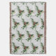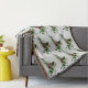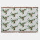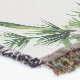 Feierlich und winterlich für den Urlaub zeichnet sich ein Aquarellmuster aus immergrünen Zweigen mit Kiefernkegel auf hellgrauem Hintergrund ab.