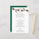Grün von Pinien mit weißen Rosen machen ein elegantes, blumengeschmücktes Dinner-Menü für eine Winterhochzeit. Weitere Akzentuierte mit subtilen Beeren und Kiefern.