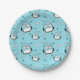 Niedlicher Pinguin mit Hut und Schal. Cooler winterblauer Hintergrund.