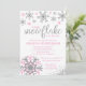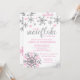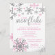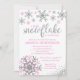 Winter Pink Snowflake Baby Dusche Einladung ist perfekt für Ihre Winter Wunderland Thema Babydusche! Alle rosa Texte und Schneeflocken sind farbig änderbar, wenn Sie mit dem Design-Tool klicken.
