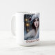 Custom Holiday Tasse verfügt über eine schöne Prinzessin in weißem Pelz geschnitten Hut und Wrap mit Winter-Blätter in einem Vintagen Stil Portrait. Ein schönes Weihnachtsportrait mit AI-Software erstellt. Personalisieren Sie den Text der "Grüße der Jahreszeit"-Nachricht oder verließ wie besehen
