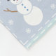 Vier Plätze in blasser Blues und Purpur sind mit Schneemännern mit Top-Hüten und Winterkleidung dekoriert, wie Rodeln, Schals und Fäustchen. Weiße Nähte fügen eine dekorative Touch hinzu, die dem sich wiederholenden Muster das Aussehen eines Steppdecks verleiht und ein sehr gemütliches Gefühl für den Winter schafft.