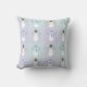 Vier Plätze in blasser Blues und Purpur sind mit Schneemännern mit Top-Hüten und Winterkleidung dekoriert, wie Rodeln, Schals und Fäustchen. Weiße Nähte fügen eine dekorative Touch hinzu, die dem sich wiederholenden Muster das Aussehen eines Steppdecks verleiht und ein sehr gemütliches Gefühl für den Winter schafft.