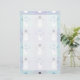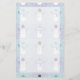 Vier Plätze in blasser Blues und Purpur sind mit Schneemännern mit Top-Hüten und Winterkleidung dekoriert, wie Rodeln, Schals und Fäustchen. Weiße Nähte fügen eine dekorative Touch hinzu, die dem sich wiederholenden Muster das Aussehen eines Steppdecks verleiht und ein sehr gemütliches Gefühl für den Winter schafft.