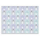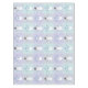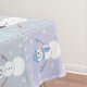 Vier Plätze in blasser Blues und Purpur sind mit Schneemännern mit Top-Hüten und Winterkleidung dekoriert, wie Rodeln, Schals und Fäustchen. Weiße Nähte fügen eine dekorative Touch hinzu, die dem sich wiederholenden Muster das Aussehen eines Steppdecks verleiht und ein sehr gemütliches Gefühl für den Winter schafft.