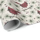 Dieses elegante Winterverpackungspapier zeigt ein Muster von handgezeichnet Roten Kardinal-Vögeln, die auf Kiefernästen stehen.