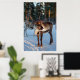 Winter Rentier Snowing Berg Hübsche Landschaft Poster