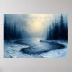 Winter River Bend - Abstrakte Foggy Forest Scene Poster