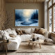 Dieses atemberaubende abstrakte Gemälde vereint die Ruhe eines nebeligen Winterwaldes mit einem sanften Fluss, der sich durch die verschneite Landschaft zieht. Die Szene imitiert die Verwendung von kühnen Palettenmesser-Strichen, die dem eisigen Wasser und den umliegenden Bäumen Textur und Tiefe verleihen. Die Kombination aus schmiegsamer Blues und weicher Grau bringt eine beruhigende, ätherische Atmosphäre zum Leben und macht dieses Stück zu einer perfekten Ergänzung für jeden, der friedliche, naturlich inspiriert Wandkunst sucht. Die abstrakte Ausdruckstechnik schafft eine einzigartige und visuell auffällige Interpretation einer ruhigen Winterlandschaft.
