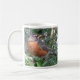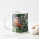 Spiegelbilder einer Fotografie von einem Robin, der auf Yaupon Stechpalmenbeeren während des Winters in südöstlichem Louisiana speist.