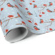 Add a cute seasonal touch to your holiday presents with this adorable custom blue Christmas wrapping paper. Gift wrap has a festive pattern of robins on tree branches in the snow. There are also Santa Christmas hats and red mittens. Add your family surname or a first name for a personalized touch.