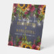 Sonnenblumen und Rose Gelbgold und rot bordeauxfarbene Blumensträuße grenzen an einen dunkelblauen Kalkboard Hintergrund um Mitternacht, mit Saitenleuchten und Ihrem benutzerdefinierten Drehbuch in Imitaten Goldtypografie, was eine schöne Braut und Bräutigamen eine willkommene Tafelschild. ++++++++++ Einfach zu personalisieren und perfekt für den Winter-, Spätsommer- oder Herbstfall rustikale Vintage Landschafts- oder Weihnachtsblütenhochzeiten.