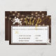 Goldkalligraphie-Skript Hochzeit RSVP mit Menüoptionen mit rustikalen weißen Blume Bouquet und Saiten von Tinkle-Lichtern auf dunkelbraunen Marron Stallholz Hintergrund. +++++++++++++++++ Ideal für Ihren Winter | eleganter rustikaler Chic | Hochzeiten im Landhausstil. ++++++++++ Wenn Sie die Menüoptionen nicht benötigen, löschen Sie einfach die entsprechenden Texte in den Flecken!