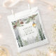 Mit der Botanischen Gastgeschenk Hochzeit-Tasche für die rustikale Pine Trees Lantern schaffen Sie Ihren Gästen einen charmanten Abstecher. Diese wunderschön gestaltete Bevorchtetasche besticht durch eine ruhige Winterlandschaft mit Kiefernbäumen und einer hängenden Laterne, die das Wesen einer rustikalen Winterhochzeit perfekt abbildet. Es ist mit botanischen Elementen ausgestattet und mit Ihren Namen und Ihrem Hochzeitstag individuell anpassbar. Es ist eine elegante Art, Leckereien oder kleine Geschenke für Ihre Gäste zu verpacken. Der schneebedeckte Hintergrund und das edle Blattwerk machen diese Taschen zu einer reizvollen Ergänzung Ihrer Hochzeitsdekoration und sorgen für unvergessliche Momente für alle Anwesenden.