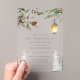Mit diesen rustikalen Pinienbäumen, die botanische Laterne mit Hochzeitsakrylen einladen, erleben Sie den Zauber einer Winterhochzeit. Mit einer wunderschön illustrierten Laterne, die inmitten von Kiefern und immergrünen Ästen ein warmes Licht ausstrahlt, verkörpert diese Acryleinladung rustikale Eleganz. Ideal für Winterhochzeiten, lädt es Ihre Gäste mit einem gemütlichen und ruhigen Waldcharme ein. Das einzigartige Acrylmaterial verleiht eine moderne Drehung und schafft so einen bleibenden Eindruck für Ihren besonderen Tag.