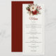 Fügen Sie Ihrem Empfang mit diesem Wintermenü den saisonalen Charme hinzu. Es ist mit festlichen Rot- und Elfenbeinfloralen, Kiefernspießen und eleganter Kalligraphie gestaltet und eignet sich perfekt für rustikale Weihnachtsfeiern. Eine schöne Art, Ihre Kurse mit der Wärme des Urlaubs zu präsentieren.