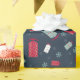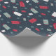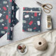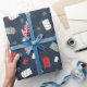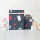 Funky gemusterte Schlitten und Winterschneeflocken stolpern über einen Marineblauhintergrund. Ein modernes Farbschema des Rotes, der Marine, des Aqua und des Weiß gibt eine mutige Erklärung ab. Koordinierengeschenkumbauten und -band auch verfügbar.