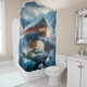 Winter, schneebedeckte Brücke und Fluss Duschvorhang