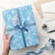 Winter-Schneeflocken auf hellblauem Geschenkpapier