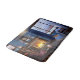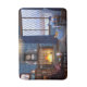 Eine gemütliche Leseecke an einem schneebedeckten Wintertag, an dem eine Ingwer-Katze am brennenden Feuer sitzt. Rund um den Saal stehen bequeme Sessel mit Kerzen und Bücherstapeln und eine dampfende Tasse, um den Komfort zu vervollständigen. Außerhalb einer frostbedeckten Weide und Buche Hecke verschleiert durch den fallenden Schnee.