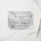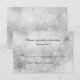 Elegantes Winterhochzeit Probe Dinner oder Hochzeit RSVP Karte in einem weißen und hellgrauen funkelnd Hintergrund gemacht. Grafiken aus Silber und rautenähnliche Schneeflocken schmücken die obere rechte und untere links Ecke. Personalisieren Sie den schwarzen Text nach Ihren Wünschen. Wählen Sie aus vielen verschiedenen Kartenvorratsoptionen für das Aussehen, das Sie am besten mögen. Passende Einladungen und Umschläge verfügbar.