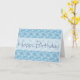 Weiße Schneeflocken sehen vor blauem Hintergrund hübsch aus. Glückliche Geburtstagwünsche werden in dunkelblau auf einer durchsichtigen weißen Band darüber geschrieben, damit Sie den Geburtstagsgruß leicht lesen können. Die Durchsichtigkeit lasse, die Schneeflocken noch zu sehen. Der innere Gruß sagt, Möge alle Ihre Wünsche an Ihrem besonderen Tag wahr werden. Der gesamte Text kann geändert werden. Schriftart, Größe und Farbe können ebenfalls geändert werden.