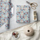 Niedliche Schneemänner mit Schals und Top-Hüten sind von fallenden Schneeflocken und Weihnachtsbeeren auf diesem festlichen Verpackungspapier umgeben.