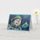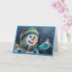 Winter Snowman Füttre Chickadee Bird Wasserfarbe K Karte