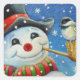 Winter Snowman und Chickadee Bird Wassercolor Art Quadratischer Aufkleber