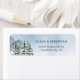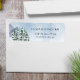 Hochzeitsdesign mit Aquarell, das eine verschneite Berglandschaft und Pinienbäume in Blau- und Grautönen darstellt. Der Text kann leicht für ein einzigartiges Design für Ihren besonderen Tag personalisiert werden.Eine schicke Wahl für elegante Winterhochzeiten in Berg oder Wald