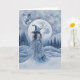 Winter Solstice Karte mit einer hübschen Volkskunst Hexe und Eule in Vollmond mit Schnee und Bäumen. Es hat ein mystisches Vintages Gefühl für das magische Weihnachten.