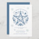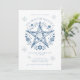 Ein rustikales Pentagramm aus Holz, eingebettet in pulsierende Blumen, steht im Mittelpunkt dieser feierlichen Party Einladung mit wintereisblauer Typografie. Ein rustikaler böhmischer Stil für Ihr Weihnachten.