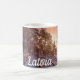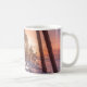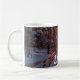 Winter Sonnenuntergang im Kiefernwald in der Nähe Kaffeetasse
