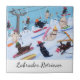 Winter-Spaß Ski fahrende Labradors Keramikfliese. Glückliche Labrador-Retrieverhunde genießen, im extravaganten Ski-Erholungsort Labradors Ski zu fahren!!! Schwarzes Labrador, Schokolade Labrador, gelbes Labrador werden alles im Bild gemalt. Sie wirklich Liebeschnee und Wintersport. Bunt und heiter. Gemalt durch Naomi Ochiai.