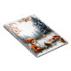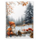 Whimsical watercolor scene of a orange-hatted squirrel amid snow, pine cones and red berries in a frosted woodland—perfect for cozy winter apparel and nature lovers.