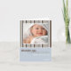 " Winter Stripes" blaue/braune Fotogeburtsmitteilung. Personifizieren Sie diese moderne und stilvolle Fotokartenschablone mit dem Ihrem Foto und den Sonderkommandos des Babyjungen für eine ein-von-ein-nette Geburtsmitteilung.