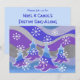 Eine moderne, stilvolle Winterlandschaft mit mattierten Kiefern und glitzernden Schneeflocken. Einladung mit lila, blauem, silberfarbenem, grauem und weißem Design für Sie, um mit Ihren eigenen Texten, Bildern und Ideen zu personalisieren. Der Text kann leicht mit der Vorlage geändert werden, oder klicken Sie auf die Schaltfläche "Anpassen", um weitere Änderungen vorzunehmen. Ein digital verstärkter Bleistift, der von Jess Perry gezeichnet wird.