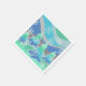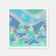 Eine moderne, stilvolle Winterlandschaft mit mattierten Kiefern und glitzernden Schneeflocken. Papierservietten mit einem grünen, blauen, silbergrauen und weißen Design, das Sie mit Ihren eigenen Texten, Bildern und Ideen individuell gestalten können. Mit einem digital verbesserten Bleistift gezeichnet Bild.