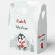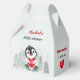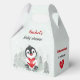 Ein bisschen Liebling ist unterwegs! Winterjunge Duschmittel-Geschenkschachteln mit bezauberndem Pinguin mit rotem Herz im frostigen Wald. Ideal für eine Babydusche im Winter und rund um den Valentinstag. Sie können aus 3 Größen dieser Gable-Gefälligkeitsboxen wählen. Personalisieren Sie den Text einfach. Kate Eden Art