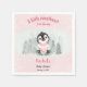 Ein bisschen Liebling ist unterwegs! Wintermädchen Duschpapierservietten mit einem zauberhaften Pinguinmädchen mit rosa Herz im frostigen Wald. Ideal für eine Babydusche im Winter und rund um den Valentinstag. Personalisieren Sie den Text einfach. Kate Eden Art