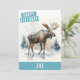 Eine niedliche Aquarell-Geburtstagskarte mit einem Elch, der den Winter auf der Vorderseite feiert, mit "Happy Birthday" in einem weißen, klopfen Schriftart. Personalisieren Sie die Vorderseite, indem Sie Ihren Namen hinzufügen. Auf der Rückseite der Karte ist Platz für Ihre getippte oder handgeschriebene Nachricht vorhanden.