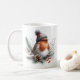 Der Winter besticht durch eine Tasse mit einem Rotkehlchen mit Hut. Personalisierbar.