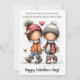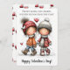 Celebrate the warmth of friendship with this charming Valentine's Day card featuring two children walking hand-in-hand through a snowy scene, surrounded by falling hearts. The reverse side includes a cheerful red heart pattern and space for senders name. Matching envelope sold seperatly.