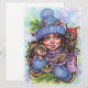 Winterwärme, Weihnachtssaison Weihnachtsmädchen-Portrait, niedliches Lächeln der Augen, Strickhut und Schal, Hutschmuck, Igel-Mäusebussfreunde, behaltend warm mit Liebe und Fürsorge, weibliche Figur, Aquarell und farbige Stifte, traditionell handgezeichnete Fantasieillustrierung von Christine Karron