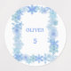 Each circular waterproof label showcases the beautiful snowflake border in soft light blue and lavender colors against a clean white background, maintaining the cohesive modern winter aesthetic of your party theme. These durable labels withstand winter weather while adding a touch of elegance to personal items, making them perfect for both party use and everyday organization.