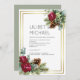 Schöne bordeauxfarbene Rose, Eukalyptus-Blätter, Kiefernzapfen und andere festliche Winterelemente prägen dieses moderne Hochzeitswerk. Teil einer größeren Sammlung, die preiswerte Einladungen für Hochzeiten, Umzüge, die Speicherung der Daten, danke Ihnen Aufkleber, Geschenketiketten, Bridal und Hochzeitsfeier Geschenke, danke Ihnen Fotokarten, und mehr. für einen detaillierten kostenlosen Leitfaden, wie Sie die perfekte Winterhochzeit mit vielen Ideen für Winterhochzeiten planen können, besuchen Sie weddingdesignchic.com.