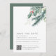 Diese moderne, elegante Winterhochzeit Save the Date besticht durch eine minimalistische Gestaltung und einen schönen, immergrünen Zweig. Alle Schriftart-Farben können bearbeitet werden. // Search "EIRA" in the Sincerely By Nicole Zazzle store für passende Designs. * Wenn Ihnen dieses Design gefällt, Sie es aber nicht für etwas finden, das Sie suchen, wenden Sie sich bitte jederzeit an mich:)