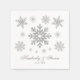 Diese individuell anpassbaren Servietten sind mit modernen, silbernen Glitzer-Schneeflocken ausgestattet. Fügen Sie die Namen der Braut und des Bräutigams und das Hochzeitsdatum zu personalisieren.